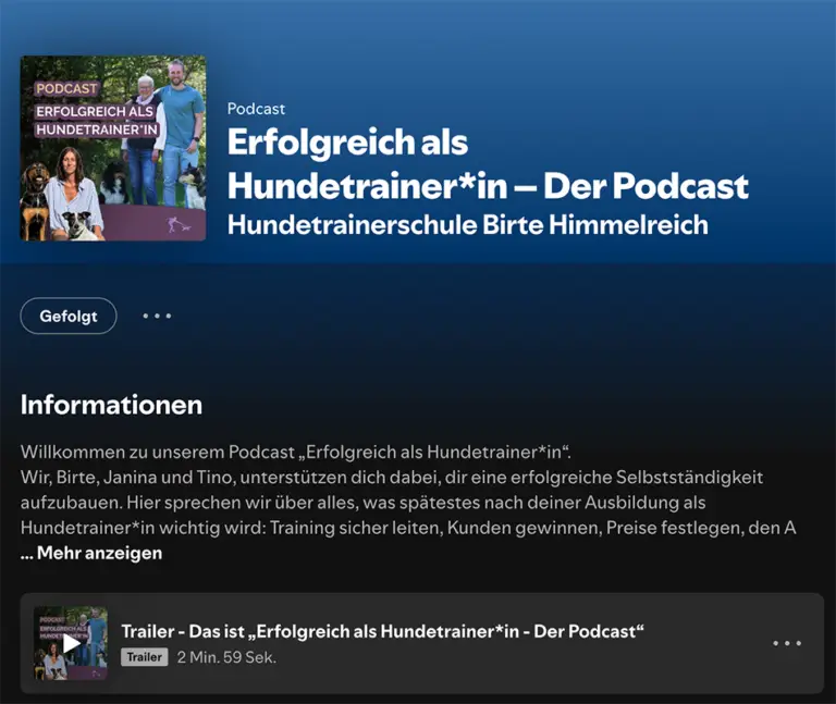 Hör gern schon in unseren Podcast „Erfolgreich als Hundetrainer*in“ rein, den wir gemeinsam mit Janina aus unserem Team umsetzen.